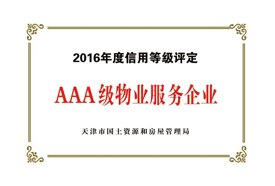 公司目前被授予:中國保安協(xié)會理事單位、物業(yè)管理綜合實(shí)力入圍企業(yè)、天津市物業(yè)協(xié)會理事單位、天津市保安協(xié)會常務(wù)理事單位、天津市保潔協(xié)會明星企業(yè)、天津市科技小巨人企業(yè)、天津市科技型企業(yè)、天津市物業(yè)管理企業(yè)優(yōu)秀項(xiàng)目經(jīng)理、企業(yè)信用評價(jià)體系A(chǔ)AA級企業(yè)、AAA級誠信經(jīng)營示范單位、AAA級重合同守信用單位、2017年被天津市工商業(yè)聯(lián)合會評為天津市民營企業(yè)促進(jìn)就業(yè)百強(qiáng)企業(yè)、社會捐贈百強(qiáng)企業(yè)、2018年銷售收入百強(qiáng)企業(yè),2020年被天津市退役軍人事務(wù)局評為天津市吸納退役軍人就業(yè)先進(jìn)單位。